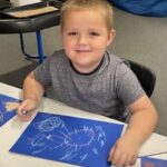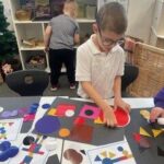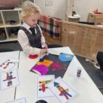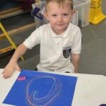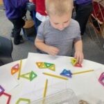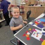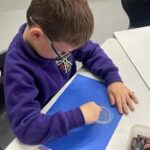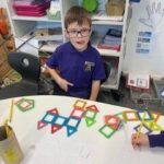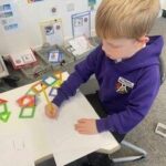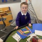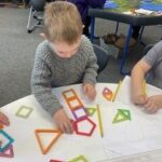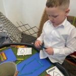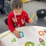The children then explored 2D shapes further using our magnetic shapes. They used the magnets and drew round shapes and patterns too.