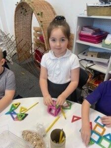 We learn best through play so we used the 3D shapes in our model  making together and talked all about them together!