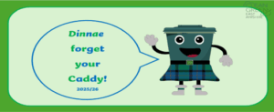 We have been learning about food waste and the importance of recycling our food waste in school. We have also discussed how to recycle food waste in East Ayrshire. If you have a chance could you as a family name your food waste caddy and encourage your child to help recycle food waste. If you have any photos of your child supporting food waste recycling or names of your caddy; please email them in and we will share them with our class.