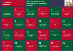 Please find attached our homework grid for December. Your child should also have been given a paper copy home today.