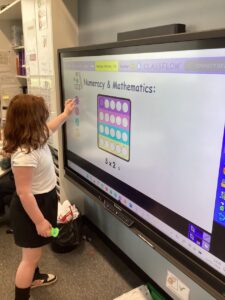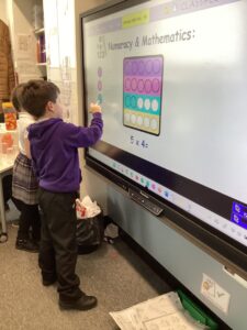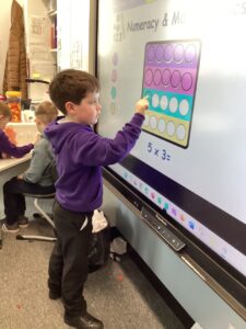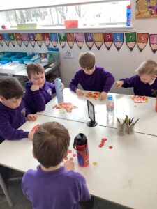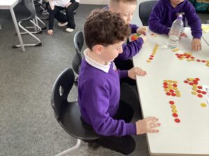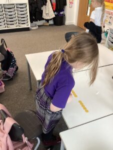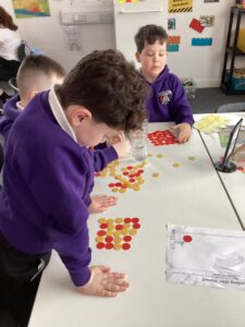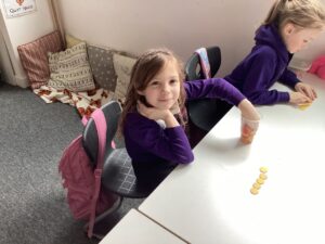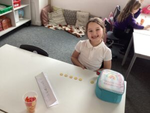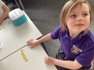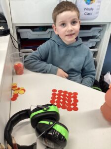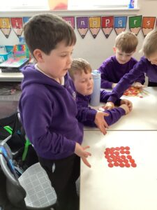 In Primary 2/3 we have been working on measure.  We have explored non-standard and standard units of measure.  We have taken part in a range of practical activities including lining up in height order, ordering items by size and describing items using comparative language including taller or shorter.  We particularly enjoyed measuring objects using our shoes, measuring our peers using cubes and exploring measure using cheerio’s.  We have also explored measuring using a rule including using the cm when describing items we have measured.
