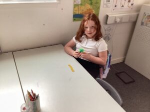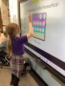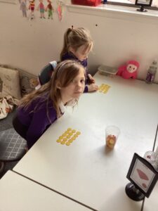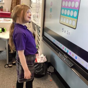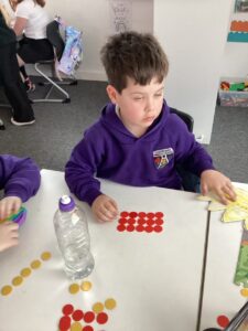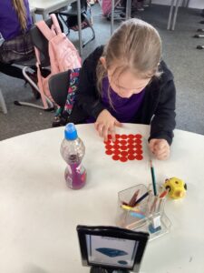 We have been making the five times table using manipulatives including counters, pop it’s and numicon.  We also started our number talks jotter and drew a picture of how we showed our understanding of the five times table and also how we solved a word problem connected to the five times table