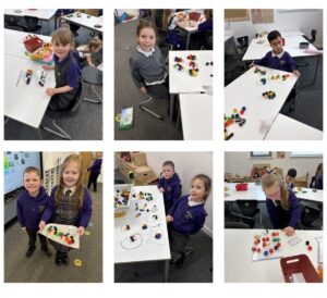 Our fractions work was continued by completing a scavenger hunt around the class! We sorted shapes that had been split into equal and not equal parts then created a booklet to show off our findings!