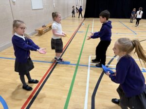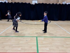 In P.E. this week we were working on our co-ordination with some fitness challenges.