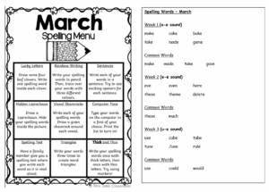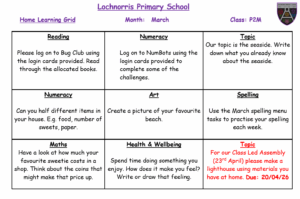 Please find a copy of the March homework grid attached. A paper copy will be issued.