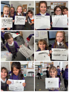 We have been completing some numeracy challenges over the past few weeks. Here are some pictures of us working super hard to complete today’s challenge!