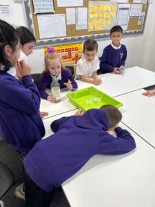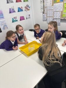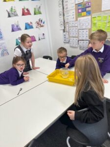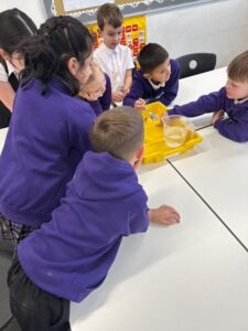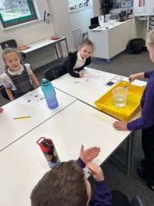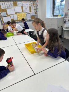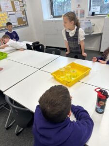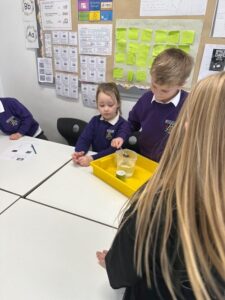 Yesterday, P3E were exploring volume and capacity. Miss Stobbs taught us how to measure liquids into containers, and we worked in small groups to solve problems. Take a look at the photos of us in action!