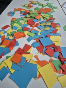We all thoroughly enjoyed creating our own shape art for our class Christmas window. We discussed the different types of shapes we were using before sticking these onto black paper in the shape of a Christmas tree. This helped us to make links between Numeracy and Mathematics and the Expressive Arts. I’m sure you’ll agree, the window looks fantastic! Norris the elf got up to some mischief and just had to get involved too!