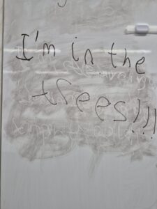 We made the most of the crisp sunshine this morning by taking our Numeracy & Mathematics work outdoors! We played a game of ‘bowling alley’ where we rolled a ball towards the whiteboard and had to add the number we hit to the number at the top of the board. See our pictures below for some action shots!