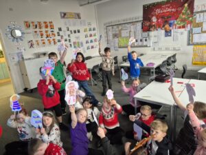 In preparation for St Andrew’s Day on 30th November, we had a ‘wee Scottish sing song’. Mr Burns brought the keyboard into class and we listened/sang along to Ye Banks and Braes, A Man’s A Man For A’ That and Wild Mountain Thyme. This sparked lots of super conversations about Scotland’s rich cultural heritage, something we will explore in depth when celebrating Scots Language at Burns Night in January. Well done P3E!