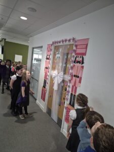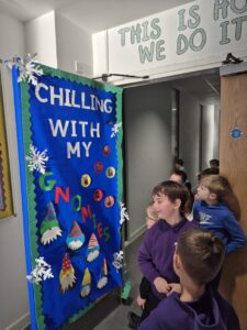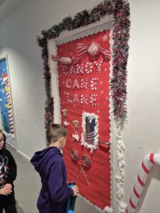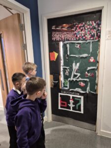 Yesterday afternoon, P3E took a wee wander into RBA to admire the wonderfully Christmassy doors they have at the moment. Thank you to the teachers from RBA who took the time to speak to the class and explain their door design to them. We had a lovely afternoon!