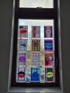 To start this term, we have been spending some time learning about Scots language. Through practising our poem and engaging in some Scottish IDL we are learning to speak some Scots words. Yesterday, we learnt some Scots vocabulary and explored the different types of Scottish tartan. We used this to inspire our own pop art words which now take pride of place on our themed window in class.