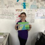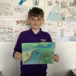 Some of P6Cs artwork created by using blue biro and a ruler. They drew what they thought the ‘Peggy Sue’ from Kensuke’s Kingdom would look like in the ocean before the storm hit. We discussed how creating space between the lines, how close the lines were, how short and how long the lines were, would make their artwork look very different. I think it makes their pieces look very effective and very atmospheric!