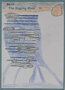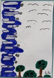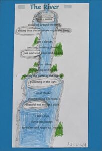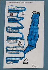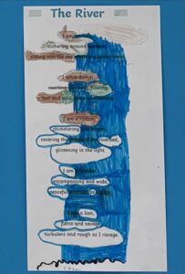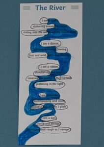 We created our own river themed Blackout Poems by deleting words from already published poems. It was very interesting to read what we created from someone else’s words. Here are just a few examples: