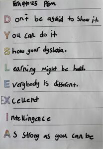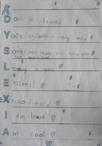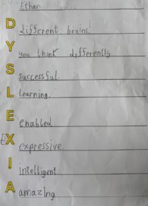 We completed many activities throughout the week such as Dyslexia acrostic poems and designing our own blue awareness ribbons. Here is some of our amazing work. 🙌🏻
