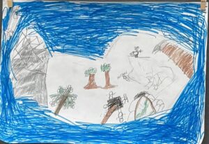 Continuing with our novel study “Kensuke’s Kingdom”, we used our visualisation skills to create these pictures of the island where Michael is stranded from the author’s descriptions on page 53.