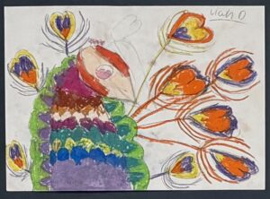 We followed a step by step drawing process to create these amazing peacock drawings! We used coloured pencils or oil pastels to add their colourings. 🙌🏻