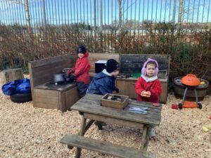 The children were also being very creative in the mud kitchen, working together as part of a team creating their own menus.