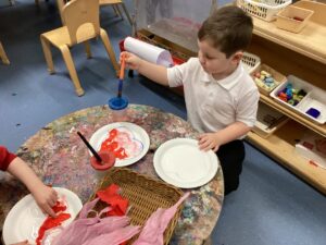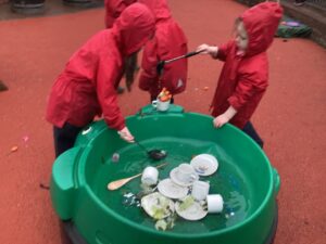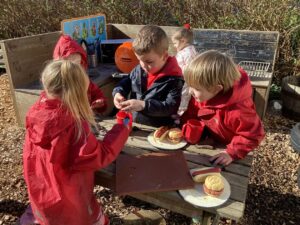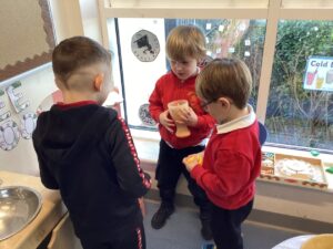 The children have also enjoyed role playing in the home corner, as a cafe, serving one another food, applying their real life experiences to their imaginative play. To further extend children’s interests we will create a cafe in the home corner.