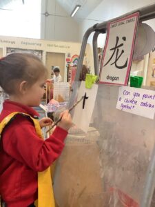 In the creative area we have began to look at Chinese new year, making our own Chinese lanterns, challenging ourselves to create a pattern. We have also been using the internet to research and explore Chinese traditions, looking at dragon dances and the zodiac symbols for animals, learning it was the year of the horse.