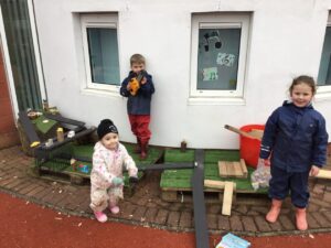 The children have been exploring Scottish music outdoors, using musical instruments to support their play, discussions around Robert Burns and the history behind this.