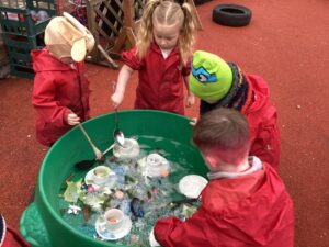 The children had the opportunity to explore the valentines sensory tray ‘spreading the love’ as the children were saying. Creating different valentines potions.