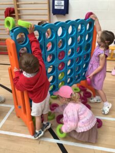 All children enjoyed various activities linked to Christmas both indoors and outdoors. Indoors the children explored our elf wrapping station where they were challenged to cut, tape and wrap gift boxes of all sizes. This supports fine motor skills and problem solving skills as well as discussing the importance of using tools safety.