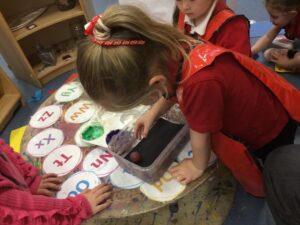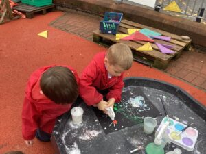 This week we have been exploring bonfire night. The children have been exploring fireworks and the movement and sound fireworks make. A main focus was safety around fireworks and how to keep safe during bonfire night. In the creative area the children have been creating their own patterns and mixing of colours.