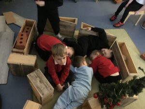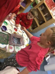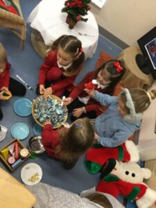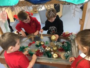 This week in the ECC the children have been exploring Christmas resources and learning experiences. The home corner has been changed into Santa’s Christmas house where the children have been role playing and using their imagination whilst exploring a variety of different resources and materials. The children have continued to explore winter animals in the small world area and their habitats. The children then incorporated a train track into the small world area and were transporting the animals via the trains. Some children have shown an interest in using the construction materials to build their interpretation of Santa’s house.