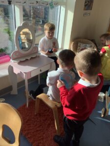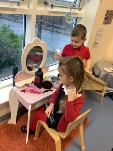 This week in the ECC the children have been using their imagination to role play in the salon. Their role play has extended into construction, building castles and acting out the role of a king, queen and princess etc.