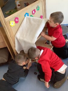 In the creative area we have continued to create our own mosaic houses as well as exploring junk modelling where they are developing their manipulative skills.
