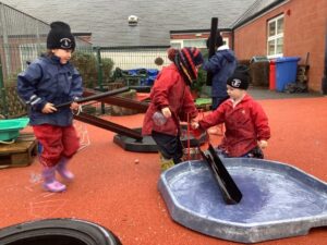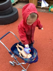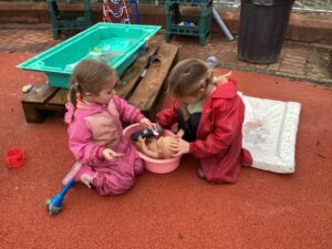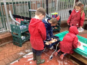 Spontaneous learning this week the children created their own mud pies in the mud kitchen and have seemed to enjoy exploring in the water tray, exploring floating and sinking.