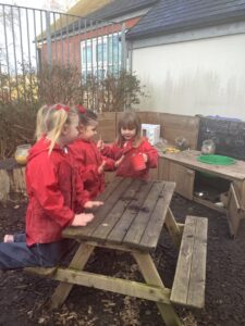 The children were also being very creative in the mud kitchen, working together as part of a team creating their own menus.