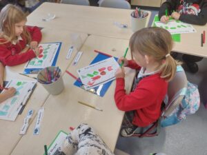 Today, we continued with our work in Symmetry, incorporating play-based learning to create symmetrical buildings using wooden blocks and Lego. We utilised ICT to spot symmetrical patterns, played sorting games and created our own symmetrical drawings.