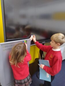 In our Number Talk today, we focused on doubles, where we worked up to double 20. We recognised that when we use doubles, we are following the 2 times table. We used this knowledge to then extend our learning into near-doubles, where we learnt that to solve tricky sums, we can use our nearest double to help us work towards the answer. Pupils enjoyed ‘being teacher’ and sharing their answers on the class whiteboard.