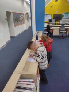 We explored nouns today as part of our literacy learning. We now know that nouns can be a person, a place or a thing. Working in two teams, we explored the school building, hunting for different nouns that we recorded in our notes. Some nouns that we found included a phone, a bell, a magnifying glass, a drum, the Science Room and even Mrs Stewart!