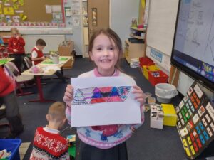 We have begun to use 2D shapes in tiling patterns as our numeracy topic, focused on shapes continues. Pupils discovered that some shapes can be tiled like squares, rectangles and triangles, whilst circles are not a good shape to use in tiling. There were some excellent patterns created, and the pupils were delighted that they met the success criteria that they themselves decided on. Well done P2/3!