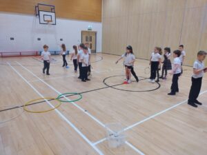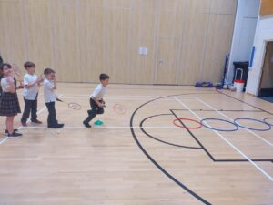 Our basketball skills are really developing and we are now becoming really confident with our passing and dribbling. This week we worked on our shooting. We combined these skills in a mixed team match, with two players from each team competing against each other before switching with our team-mates. The fast-paced rotations were the perfect opportunity to hone our skills, and it was great to see some ‘baskets’ scored!