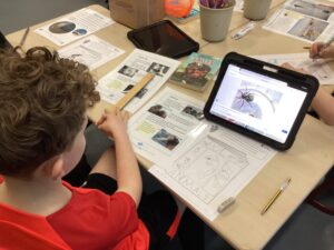 We built on our learning focused on quadrilaterals, regular and irregular shapes, and right angles, by exploring the school to look for different types of shapes. We used our right-angle tools to identify right angles, finding that they are everywhere from books, to windows, to computer screens and even on the floor!