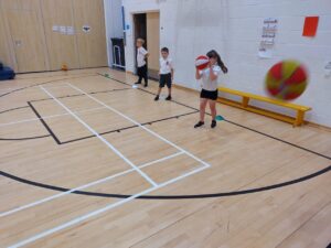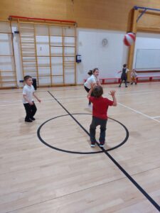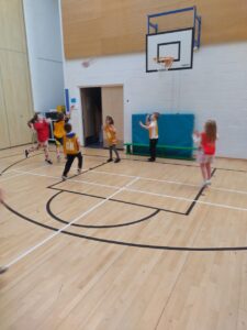 Our basketball skills are really developing and we are now becoming really confident with our passing and dribbling. This week we worked on our shooting. We combined these skills in a mixed team match, with two players from each team competing against each other before switching with our team-mates. The fast-paced rotations were the perfect opportunity to hone our skills, and it was great to see some ‘baskets’ scored!