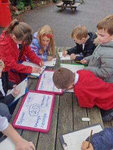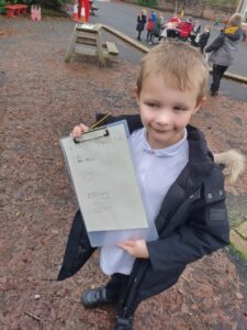 Pupils used their clipboards to sketch and then label their findings.
