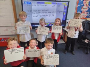 Question Marks have been our focus in Grammar lessons over the last few weeks. We can now tell the difference between a sentence and a question, and can add in missing question marks within a piece of text. Creating our own questions lets us share our learning with the rest of the class.