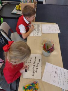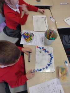 This week we are practising our ay, ea and y sound words that we have been learning over the last 3 weeks. Pupils have been working hard on writing the words alongside building them with their magnetic letters.