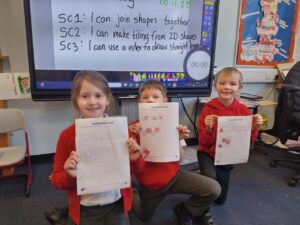 We have been continuing with our Shape topic. This week, we began to explore 3D shapes, and how they relate to their 2D equivalents. Pupils are learning how to draw 3D shapes – we might have some future architects in our class!