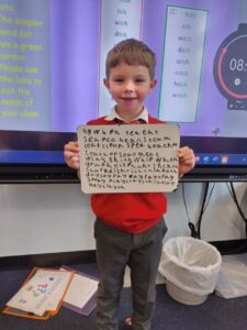 We begin each week with our Morning News. This lets us share our stories from the weekend; where we’ve been, what we’ve done, and who we spent it with. This lets us develop our independent writing skills, whilst the best bit is sharing this news with the rest of the class.