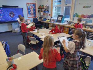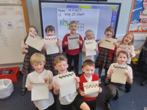We have begun to use 2D shapes in tiling patterns as our numeracy topic, focused on shapes continues. Pupils discovered that some shapes can be tiled like squares, rectangles and triangles, whilst circles are not a good shape to use in tiling. There were some excellent patterns created, and the pupils were delighted that they met the success criteria that they themselves decided on. Well done P2/3!