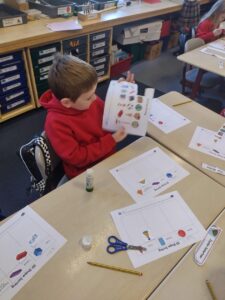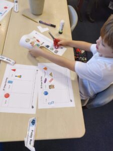 Today we have been sorting a variety of shapes, using our knowledge of 3D shapes. Pupils worked on this independently and were delighted to self-assess their work.