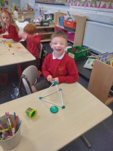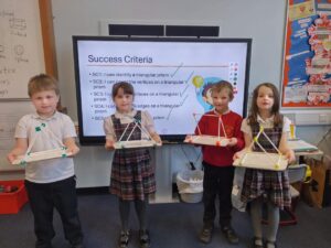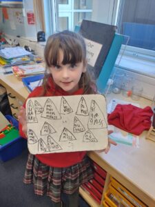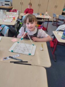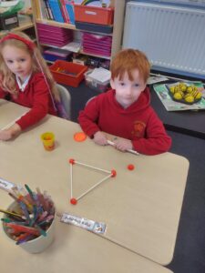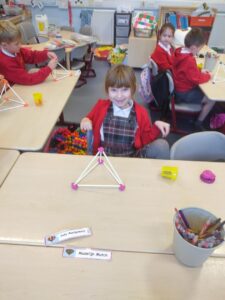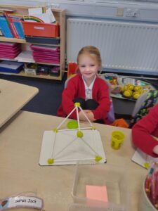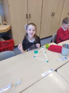 Today we discovered the triangle-based pyramid. This was a new 3D shape that we learned about during our numeracy topic focused on Shape. We built our own models, building on the skills we developed last week.