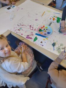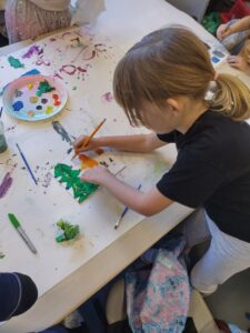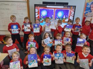 We created a winter themed canvas painting when two local artists came to visit the school. We were really excited to hear that our work will be displayed in a local gallery.