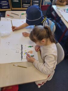 Developing our listening skills is important for success in our learning. Today we followed our teacher’s verbal instructions to draw and colour a piece of art that we could not see, we had to only listen to what we had to draw and the colours we had to use, step by step. It is clear we have some superb listeners in class!